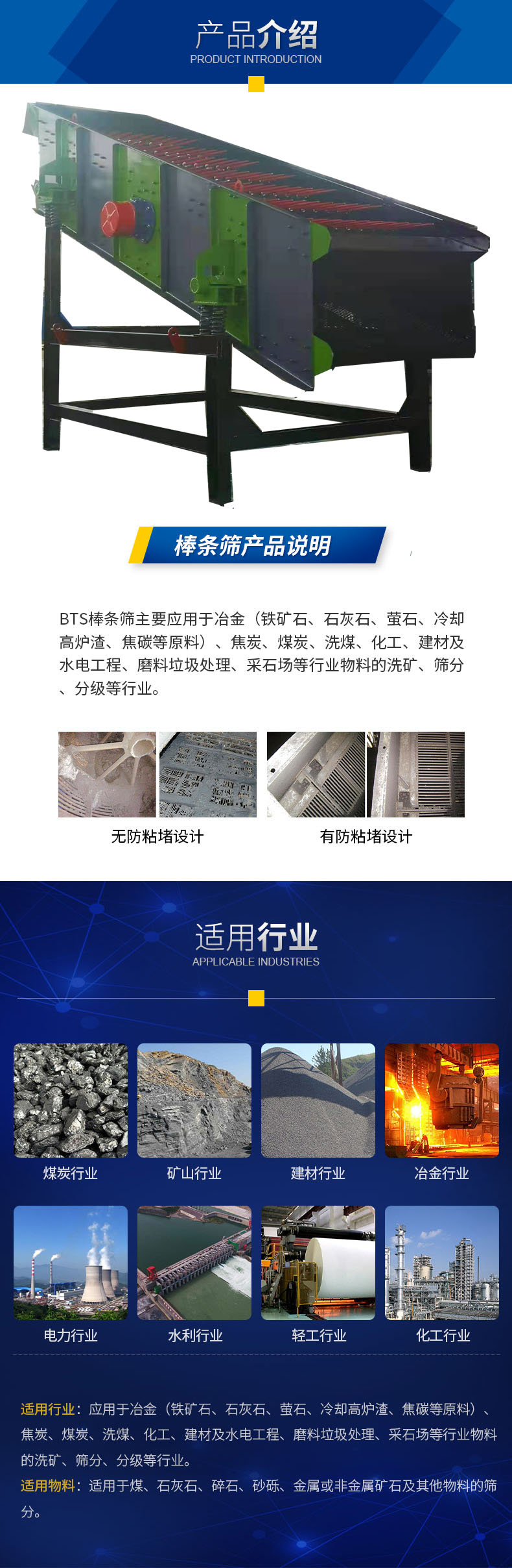 廠家現貨供應1548型棒條篩主要應用于冶金(鐵礦石、石灰石、螢石、冷卻高爐渣、焦碳等原料)、焦炭、煤炭、洗煤、化工、建材及水電工程、磨料垃圾處理、采石場等行業物料的洗礦、篩分、分級等行業。BTS棒條振動篩各種幅面規格和篩孔尺寸的新型結構模式篩板,尤以通用于沖擊性強、硬度大、耐磨性高要求的場合。BTS棒條振動篩在鐵礦石中細碎篩分、原煤分級、黃金、建材以及水電、核電工程砂石的篩分等用耐磨篩板。