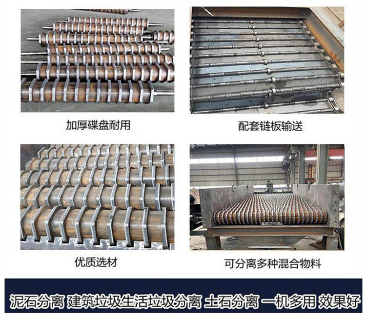 泥石分離碟盤篩分機用于:石料場的泥石分離、砂石分離,選礦廠礦石分選、煤礦煤炭輸送分離、煤矸石分離,建筑裝修垃圾分離、生活垃圾分離、陳腐垃圾分離等。