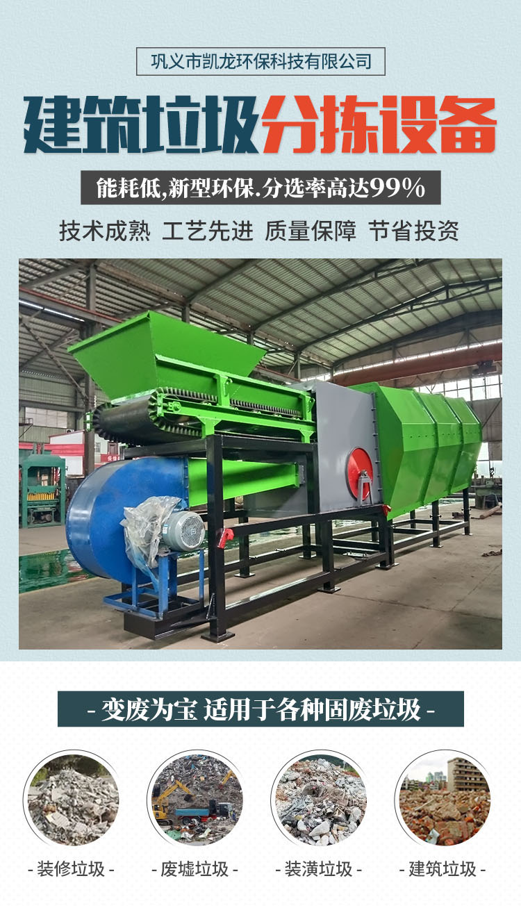 小型生活垃圾處理自動分選機場地不受限,可在任何場地進行垃圾篩分處理的,結構簡單、緊湊。體積小,篩筒不易發生變形,垃圾在篩筒內停留時間長,篩分徹底的垃圾篩分機。