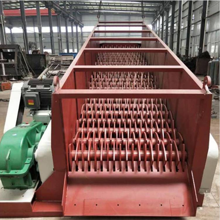 當固體廢物由皮帶輸送裝置進入分揀機入口處時首先由一分段的大揀軸進行轉旋分揀后送入出料區。一分揀大轉軸上設有三等分行距及幾十個彈簧鋼棒對進料垃圾進行翻滾分揀、磁吸、破袋等工藝流程后由二根四等分的分揀接料,將分揀出來的老人及小孩尿不濕、紙箱、木材等送到一出料口的皮帶出料機送入打包機進行打包處理;在一分揀軸與二分揀軸中間設置2組幾十巴破袋梯形刀片,通過上述二軸分揀下來的垃圾主要是酒瓶、塑料瓶及磚塊等由三根六等分軸進行分揀然后通過旋轉的方式送到二出料口的皮帶輸送機上后再送入打包機;剩下手紙、菜葉、小破布等通過格柵網板的振動送入第三出料口的皮帶輸送機然后再送入打包機;第四出料口主要是5號電池、石子、玻璃和瓷物碎片等通過振動斜網孔板排出;剩下的是污水;
