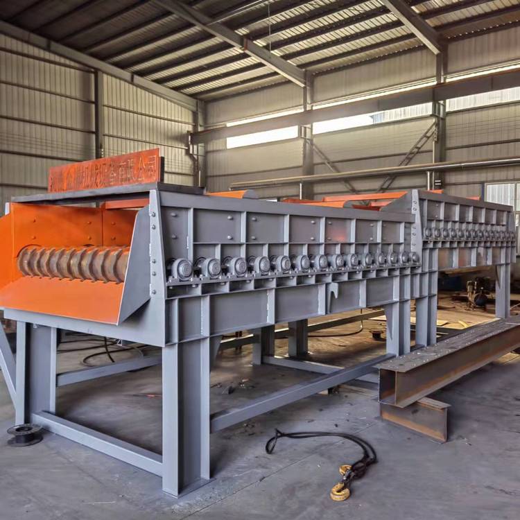 (1)板式給料機在定向振蕩同時,出現改變振蕩,只需調整激振器的激振力效果線,使其過槽體重心即可防止改變振蕩。