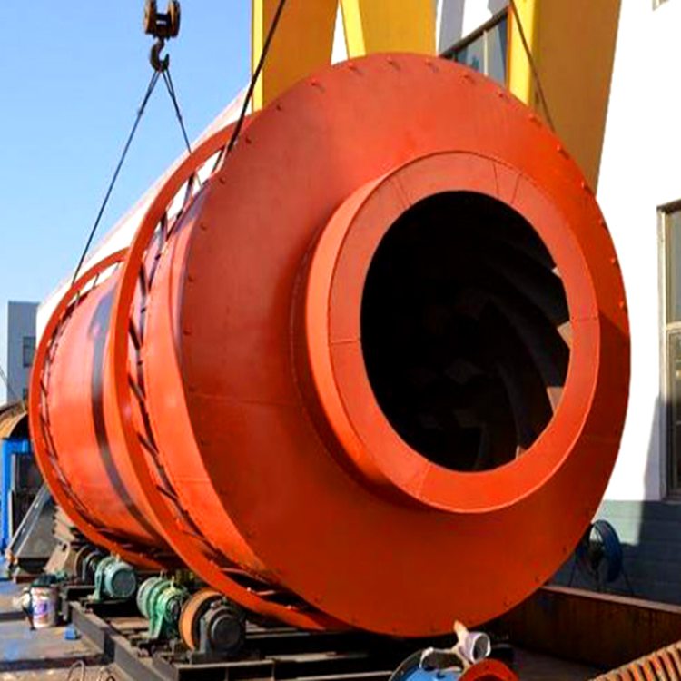 烘干機筒體部分由三個同軸水平放置的內中、外筒套疊組成,這就使筒體的截面得到充分地利用,其筒體外形總長度約為與之相當的單筒的30-35%。從而大幅度的減少占地面積和廠房建筑面積。