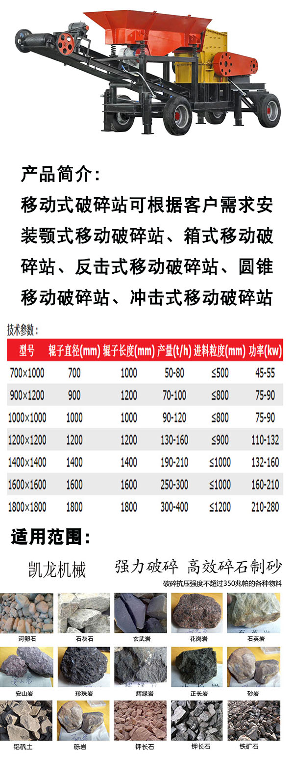 【應用領域】:主要應用于高速公路、鐵路、機場跑道、礦山、煤礦、建筑、垃圾及建筑垃圾的循環再利用、水電工程、城市基礎設施、道路或建筑工地等需要搬遷,流動性強的作業。