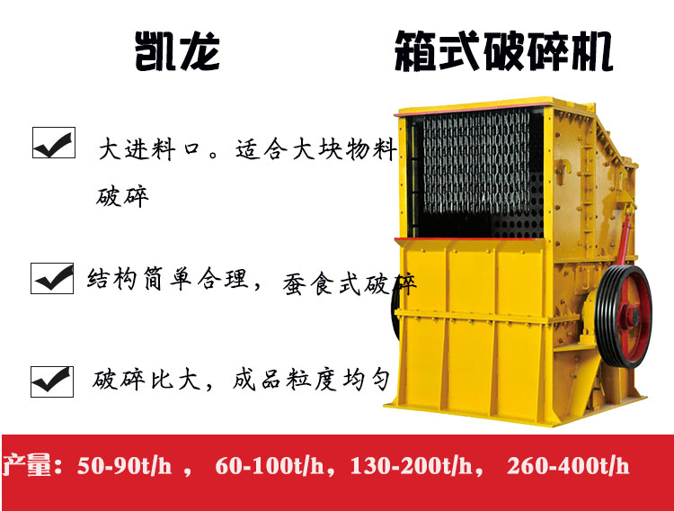 箱破碎機適用物料:各種礦石、石灰巖、石英巖、河卵石、花崗巖、玄武巖、煤矸石、建筑垃圾等。